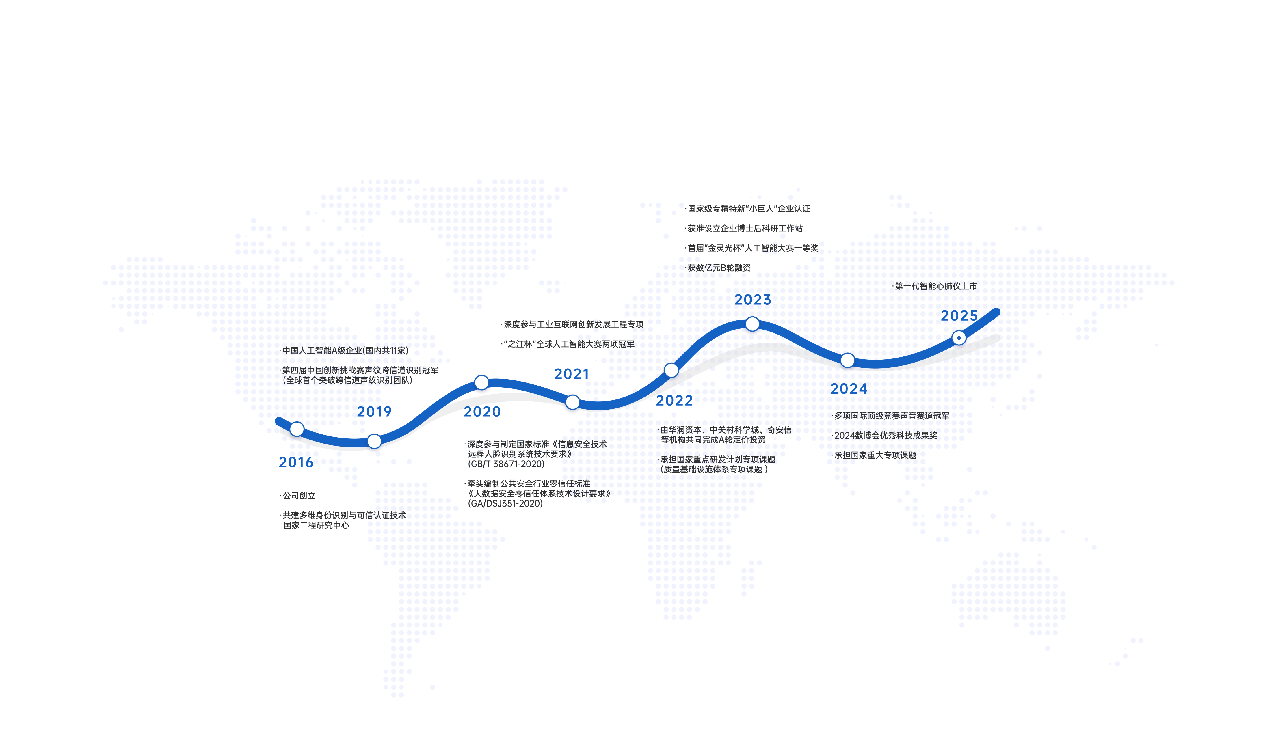 公司具备顶尖的听觉及视觉全栈智能技术和服务能力,曾荣获声纹识别、音视频鉴伪、语音关键词等多项技术国际级/国家级竞赛冠军,至今已编制10余项国家标准、行业标准及团体标准,发明专利140余项。
